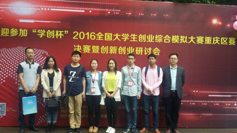 2016年“学创杯”全国大学生创业综合模拟大赛重庆赛区决赛在于5月8日上午9时至15时举行,由管理学院选拔出的6名学生组成的两支代表队参加了比赛,经过连续6小时的比赛,来自14级市场营销本科班的王娟、罗教、唐爽文(指导教师:王燕楠、陈可)、张静、方钰、李秋莹(指导教师王燕楠、傅翔)分别荣获本科组市级二等奖。