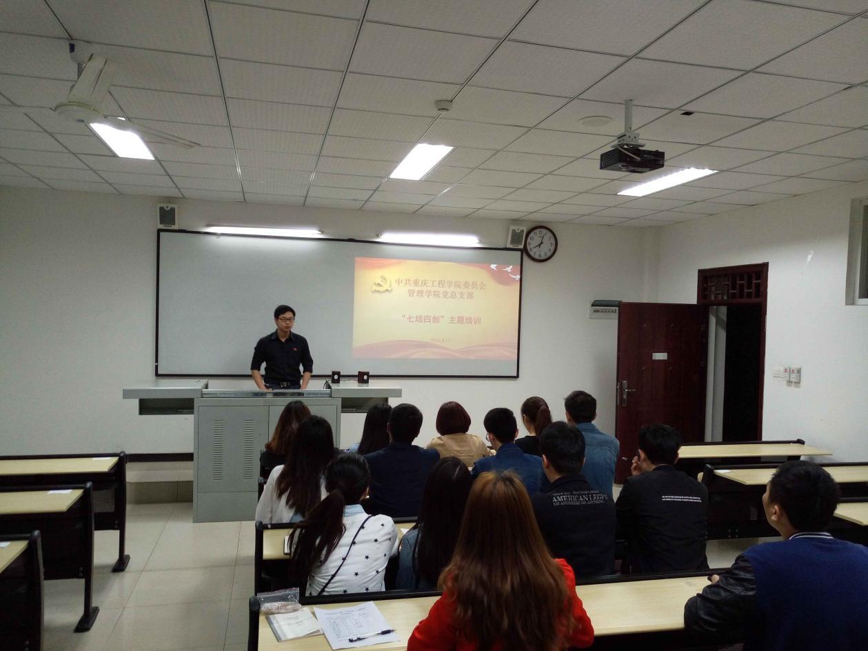 2016年4月17日,管理学院全体学生预备党员在六教学楼224教室开展管理学院学生党员过程性培养(“七培四创”)主题培训。会议由学生预备党员张巍主持。