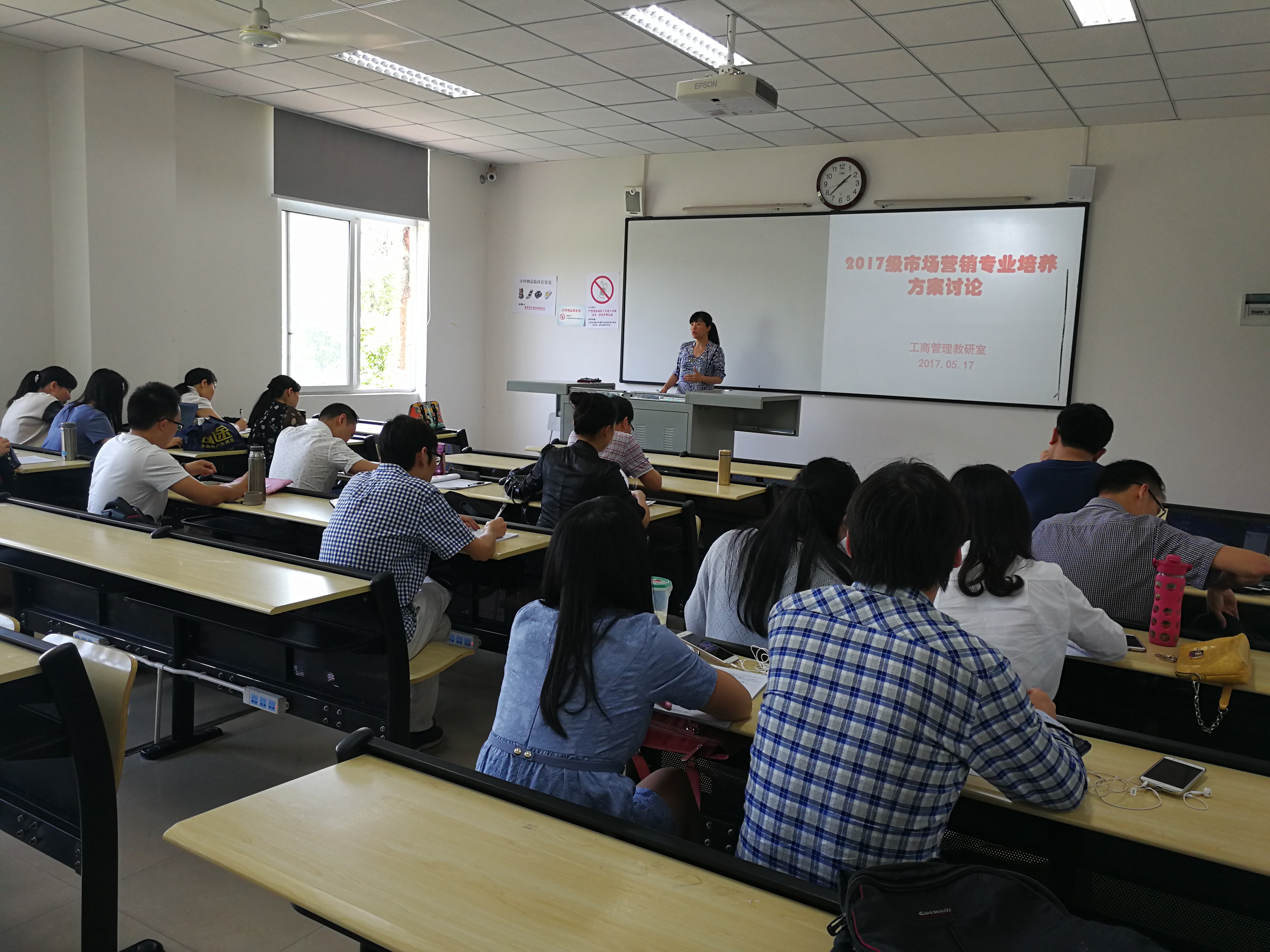 5月17日下午1点半,工商管理教研室全体成员在6111教室举行了2017级本科市场营销专业培养方案内部评审工作。会上专业带头人彭教授及全体教师都积极参与了讨论,并提出了培养方案的修改完善意见。