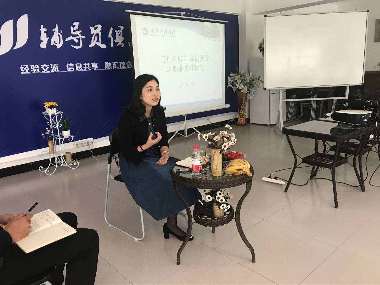 2017年5月12日早上9点30分,管理学院学生工作室特邀重庆重庆理工大学国际学院党总支副书记龙婷教授做学生工作交流,龙书记,曾担任辅导员12年,有丰富的学生工作经验,曾获2015年重庆市高校辅导员年度人物。坚持思政教育创新,凝聚网上网下合力。创办重庆理工大学“青年红色根据地”红色网站。指导学生连续三年拿下校“学子百家讲坛”冠军,极大的激发了学生们的科研热情。