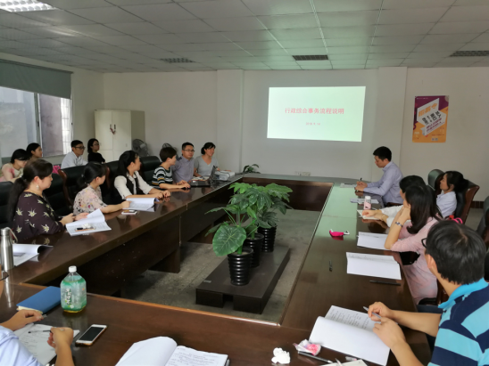 2018年9月20日,为提高学院各项行政综合事务办结效率,管理学院综合办公室为全院教职工召开了行政综合事务培训会,培训主要包括学校及学院的会议管理、印章管理、接待管理、车辆管理、调停课、财务报销、简报撰写、资金计划、公文撰写等行政事务流程及操作注意事项。