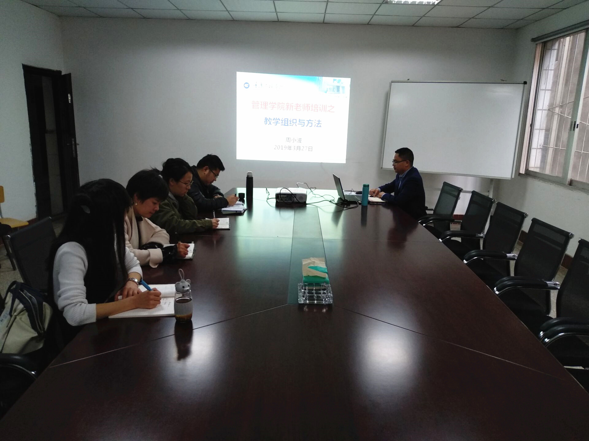 2019年3月27日,工商管理系主任周小波在管理学院3313会议室开展新教师培训,此次培训专题为教学组织与方法。