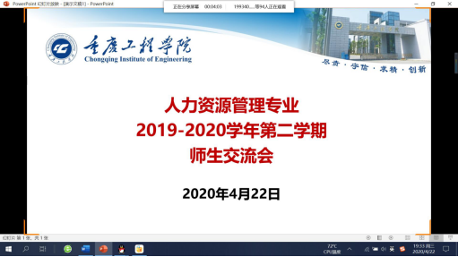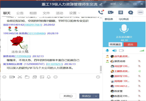 人与人之间的交往离不开沟通,教师作为学生成长的“重要的引路人”,教师的作用显得尤为重要。教师的工作就是与学生沟通的过程,教学的每一个环节,教育的任何一个细节,无不隐含着沟通。为了进一步加强我系师生交流,密切师生联系,促进教学互动,提升教学和人才培养质量,我系于2020年4月22日晚上19:30-21:30通过QQ群屏幕分享的形式开展了人力资源管理系2019-2020学年第二学期师生交流活动。