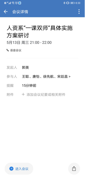深化产教融合,促进教育链、人才链与产业链、创新链有机衔接,是当前推进人力资源供给侧结构性改革的迫切要求,对新形势下全面提高教育质量、扩大就业创业、推进经济转型升级、培育经济发展新动能具有重要意义。21世纪,国家将大力支持应用型本科和行业特色类高校建设,紧密围绕产业需求,强化实践教学,完善以应用型人才为主的培养体系。逐步提高行业企业参与办学程度,健全多元化办学体制,全面推行校企协同育人。人力资源管理专业为了更好地推进和落实产教融合办学机制,2020年5月13日21:00-22:00全体教研室成员通过企业微信会议的形式开展了主题为“一课双师”具体实施方案的专题研讨。