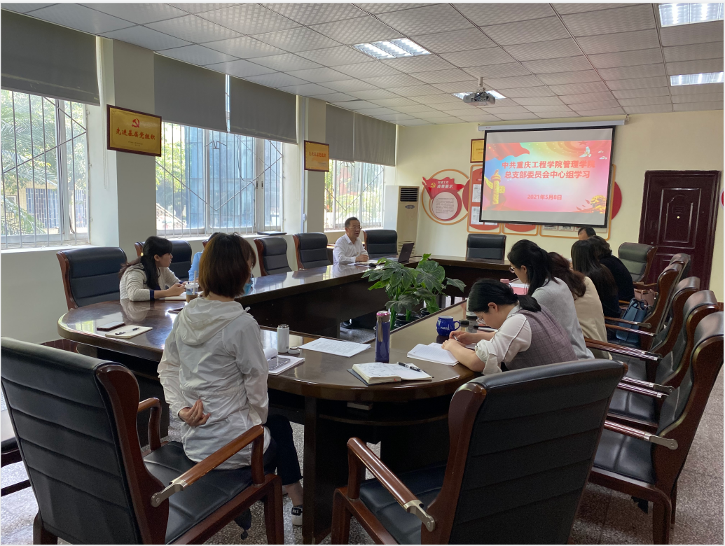 为做好管理学院党建工作,强化党总支班子学习队伍,2021年5月8日15:00,中共重庆工程学院管理学院总支部委员会中心组开展了学习活动。