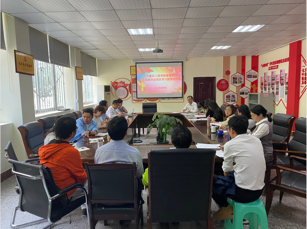 2021年5月8日下午,管理学院党总支在3教101会议室举办党史学习教育读书班,学院党总支书记刘达斌主持,部分教师党员、民主党派、高知分子参与党史学习教育。