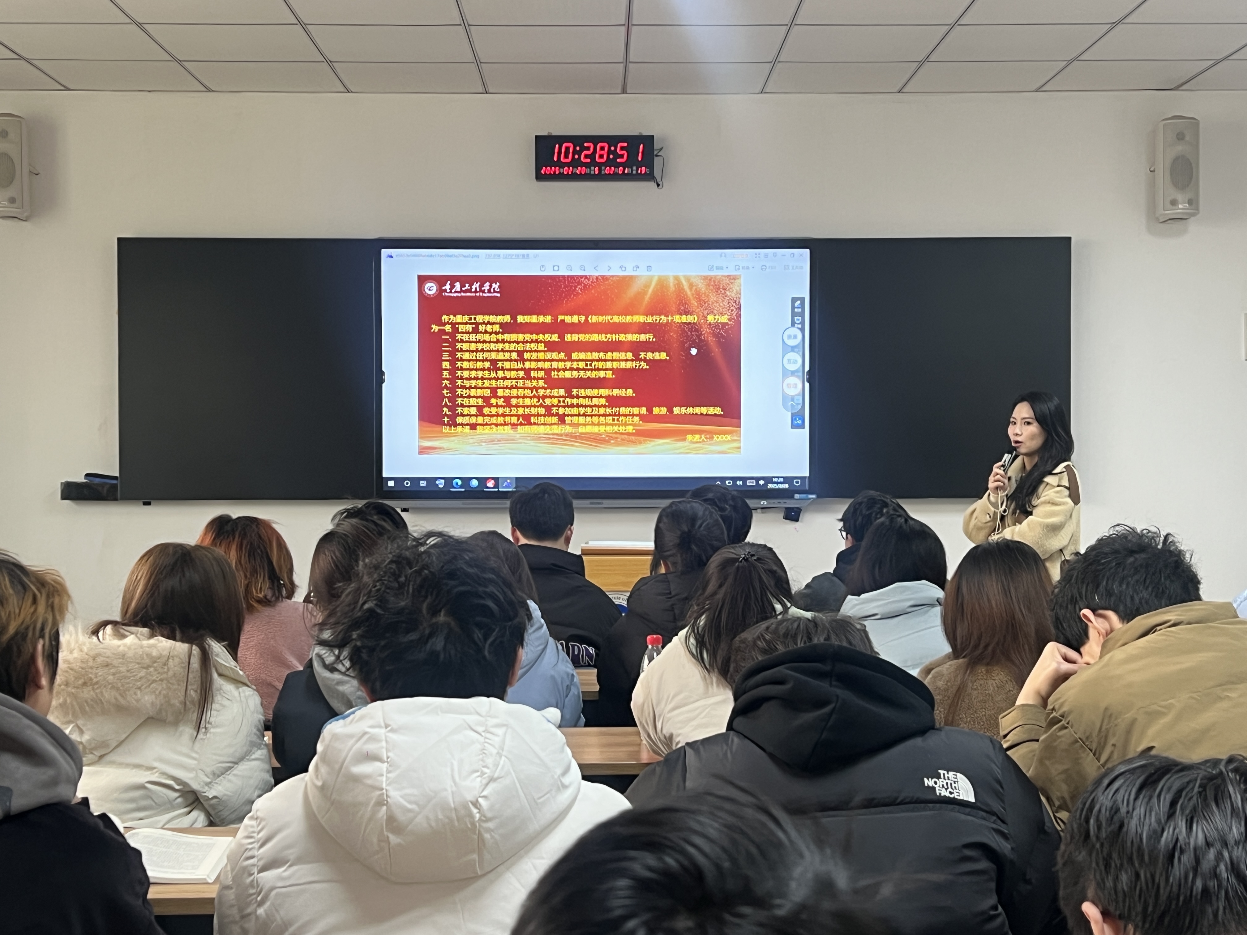此次“师德承诺第一课”活动,是我院持续深化师德师风建设常态化机制的重要举措之一。它不仅是一堂生动的师德教育公开课,更是一次深刻的师生互动与心灵交流。通过这种公开承诺的形式,强化了教师的职业荣誉感、责任感和使命感,将外在规范要求内化为自觉价值追求和行为导向;同时也向学生和社会公开表明了学院建设高素质教师队伍、营造风清气正育人环境的坚定决心。