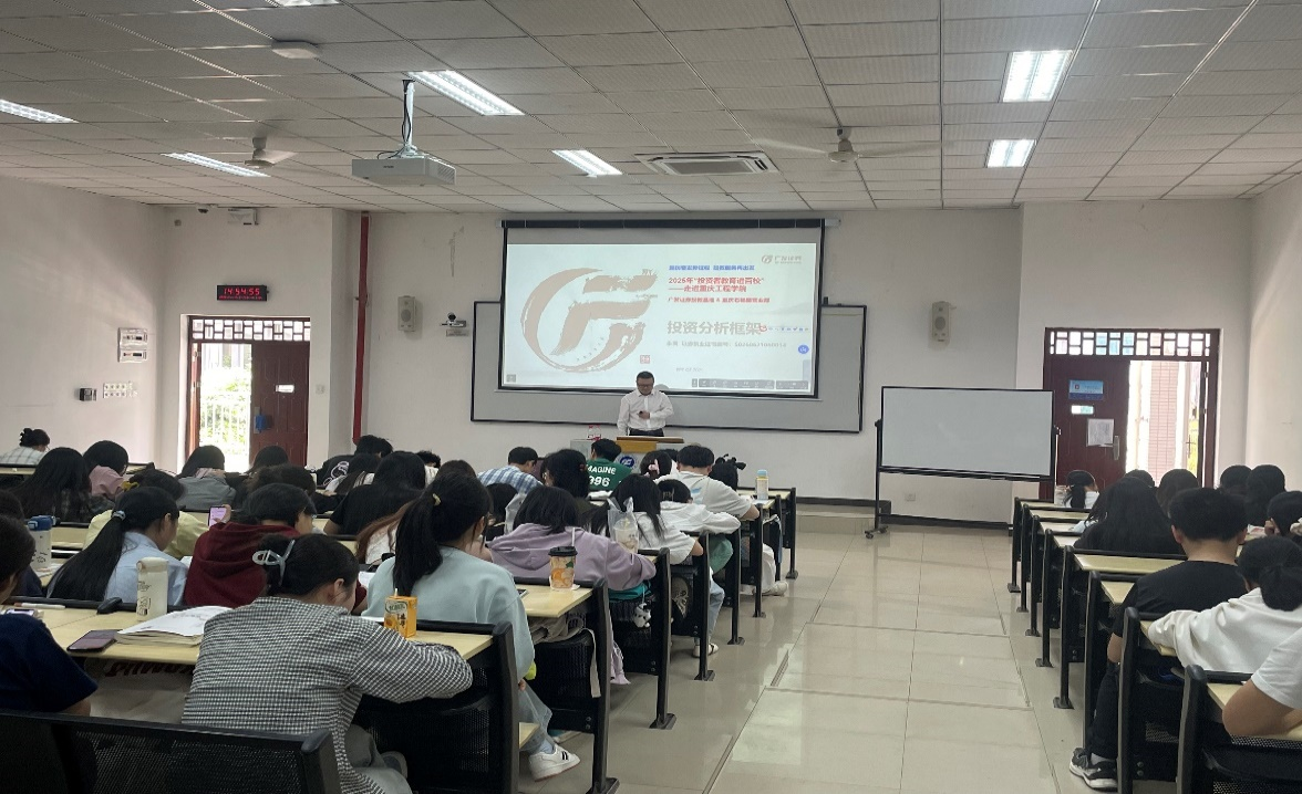 讲座内容从投资分析框架与投资者自我保护展开,广发证券重庆石杨路营业部投资顾问朱贺深入浅出地讲解了投资分析的关键要素与逻辑脉络,从宏观经济形势的解读方法,到行业发展趋势的剖析,层层递进,让同学们学有所思,思有所得。投资顾问冉文同用身边的实际案例深入浅出的剖析金融诈骗揭秘,帮助同学们提升风险防范意识,见微知著,增强自我保护能力。投资经理耿文淘为同学们讲解了职业规划及必备的专业证书等,让同学们对以后的就业有更明确的方向。同学们被精彩讲述深深吸引,积极参与互动,踊跃提问,现场气氛十分热烈。