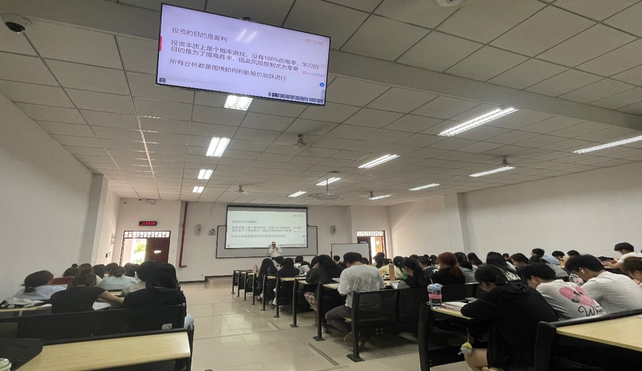 (文/图 黄贞贞)为积极响应教育部关于深化产教融合、校企合作的号召,管理学院于2025年4月16日下午2点在六教201成功举办《投资学》“一课双师”专家讲座。活动由管理学院教师黄贞贞主持,特邀来自广发证券重庆石杨路营业部的投资专家耿文淘、朱贺、冉文同共同授课,为同学们带来了一场理论与实践深度融合的精彩课程,有力推动了金融投资领域的教学创新与改革。22级财务管理专业共185名学生参加了此次讲座。