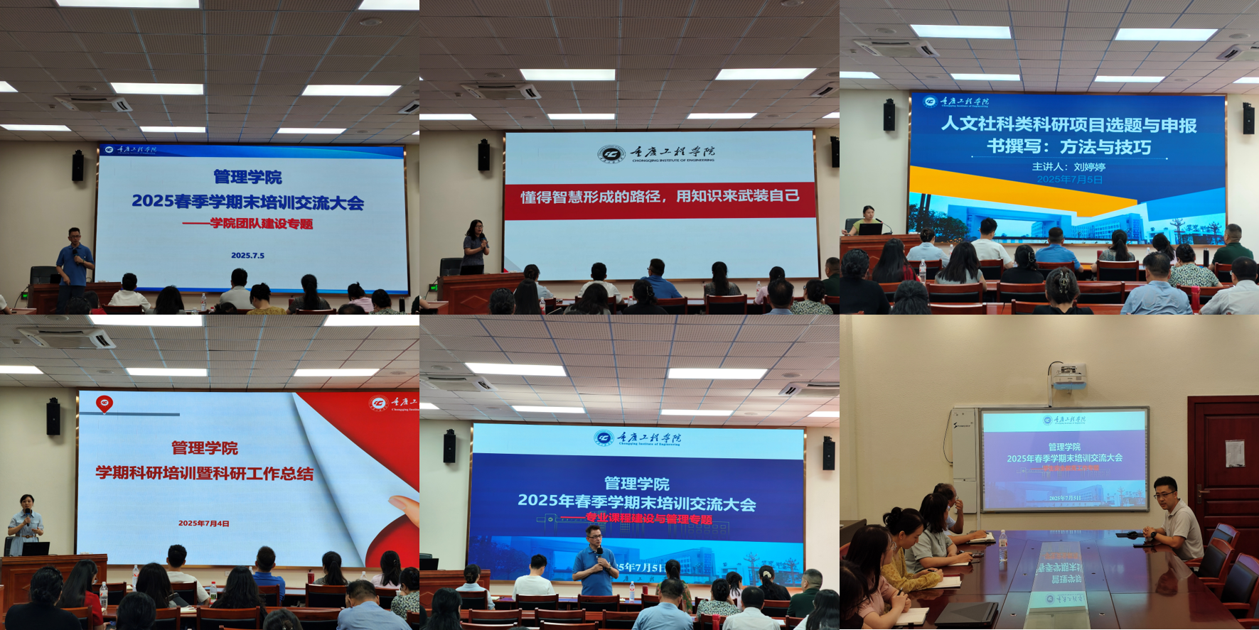 (图/文 李克)为深化教师队伍建设,全面提升团队专业素养与业务能力,2025年7月5日至8日,管理学院成功举办“管理学院2025年春季学期末培训交流大会”。本次培训精心设置10项核心议题,涵盖教学、科研、学生管理等多个领域,管理学院全体教职工全程参与。