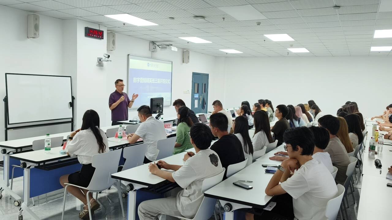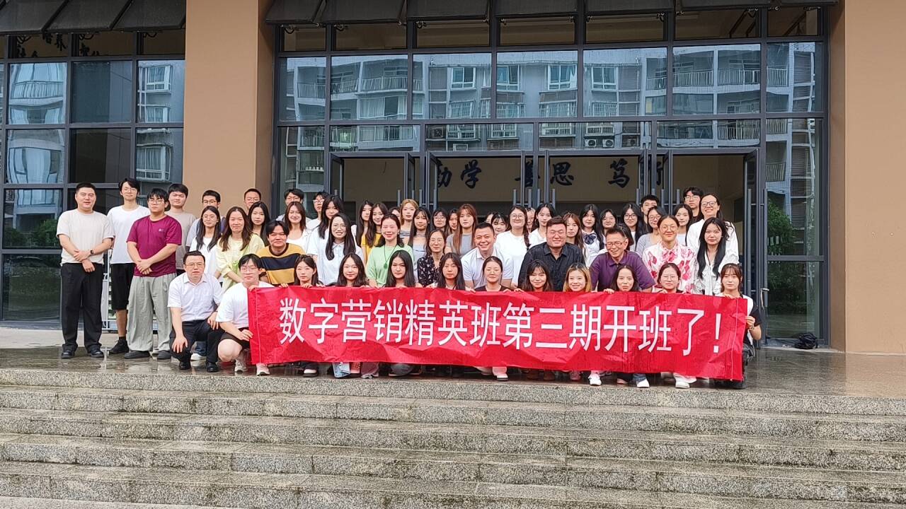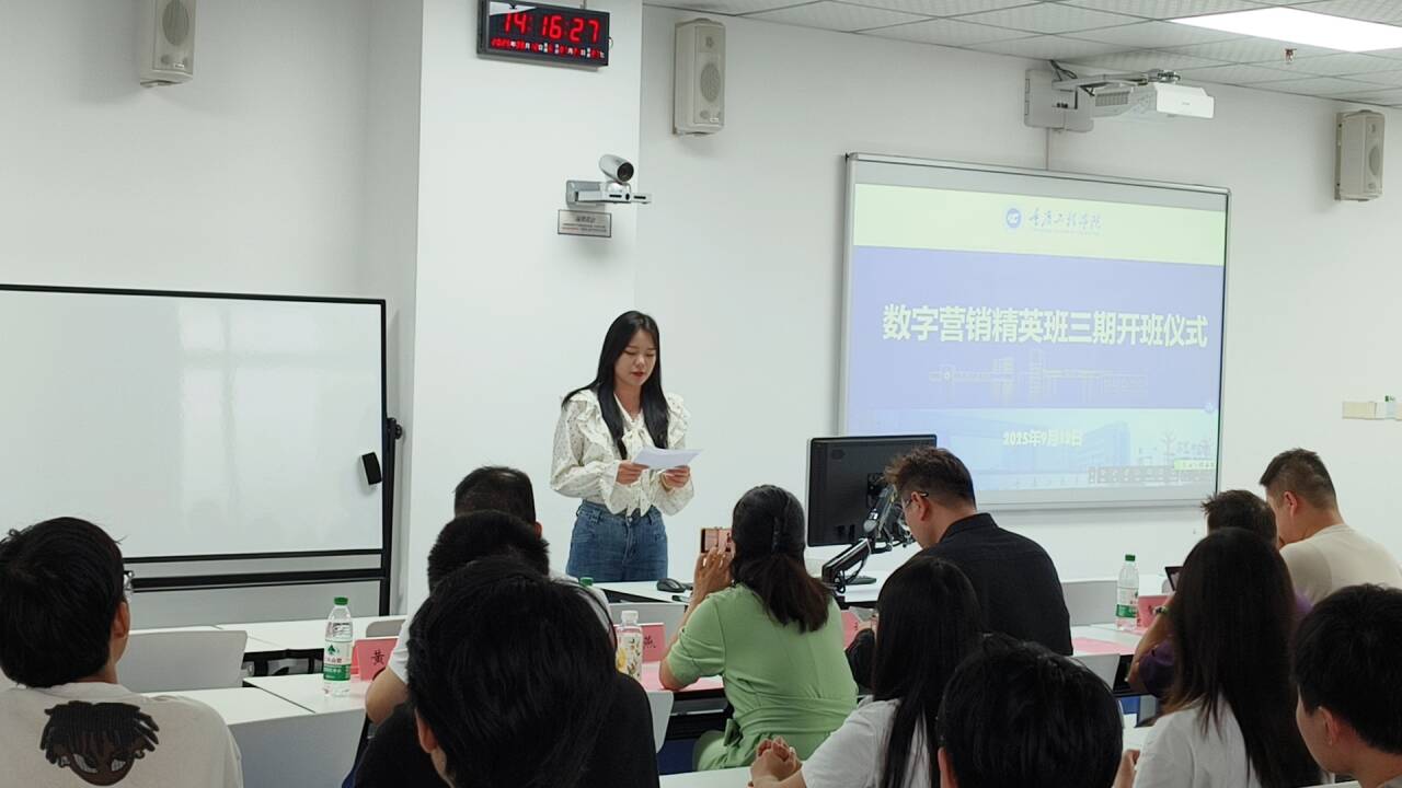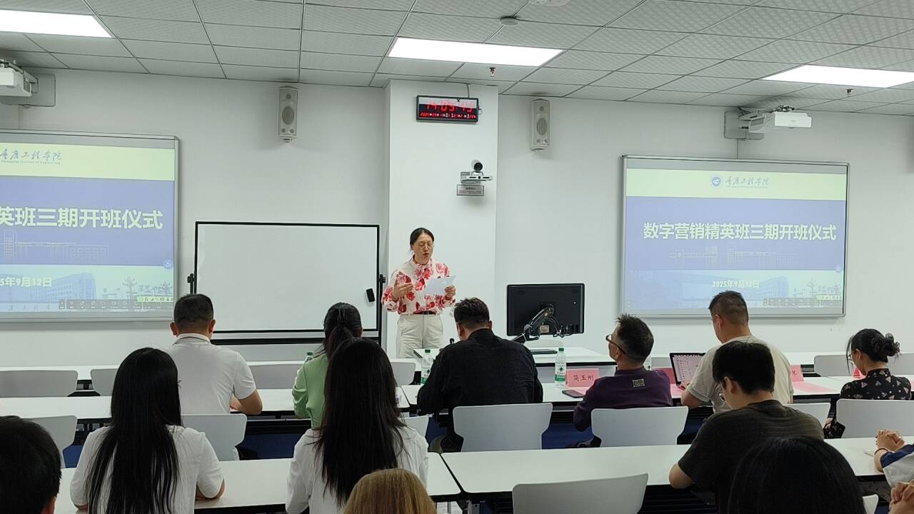 本网讯(图/文 数字营销系 杨仕梅)2025年9月12日下午,管理学院数字营销精英班第三期开班仪式在第七教学楼71101教室举行。本次仪式由数字营销系副主任陈颖主持,与会人员有校企双方代表、院系领导及第三期全体学员。