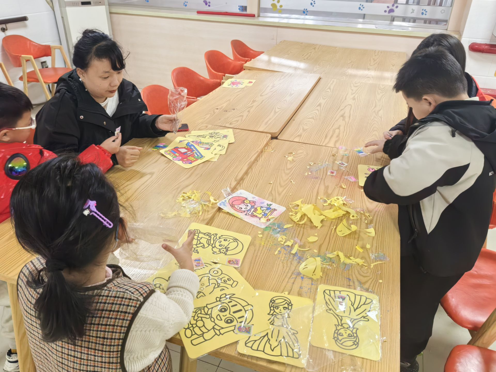在“童心诉感恩”环节中,小朋友们化身“感恩小使者”,纷纷举手分享自己与父母、老师、邻里的暖心故事。稚嫩的话语里满是真诚,简单的故事中饱含温情,现场不时响起阵阵掌声。沙画DIY环节更是将活动推向高潮,志愿者为孩子们分发彩沙、画板与工具,耐心指导创作技巧。孩子们充分发挥想象力,用五彩沙粒勾勒出与家人出游的温馨场景、向长辈问好的感人瞬间,在指尖流转间将无形的感恩之情转化为一幅幅生动鲜活的艺术作品,既锻炼了专注力与动手能力,更深化了对感恩的理解与感悟。