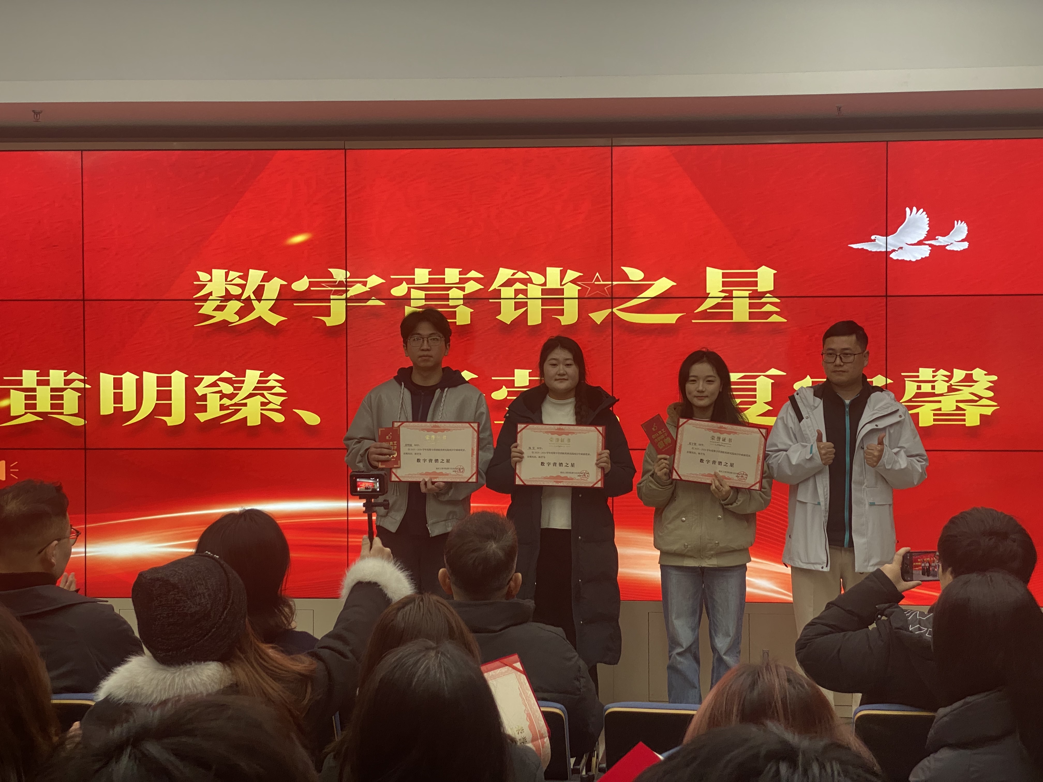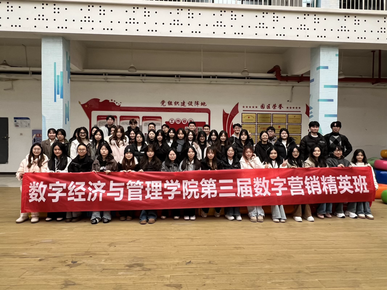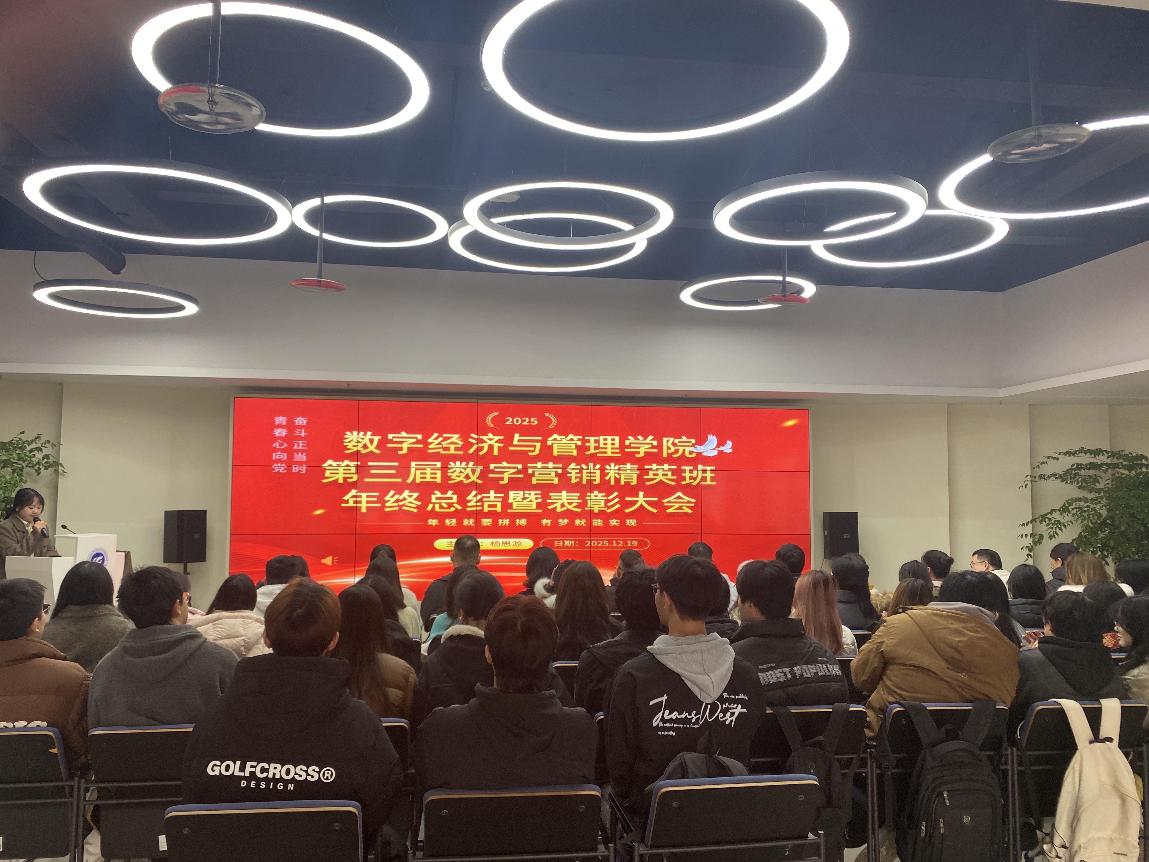 本网讯(文/图 数字经济与管理学院 杨仕梅)12月19日下午,数字经济与管理学院第三届数字营销精英班年终总结暨表彰大会在重工创谷A101路演大厅召开,本次大会由视频号数字营销项目优秀学员杨思源主持,重庆数字商务创新中心总监李海燕,重庆商社汽贸别克数字营销项目负责人王诚、别克新媒体运营负责人骆心怡,以纯重庆办事处推广负责人武杰、以纯校企合作负责人李艳,数字经济与管理学院院长简玉刚、副院长李玲等出席,全程见证学员成长与成果。