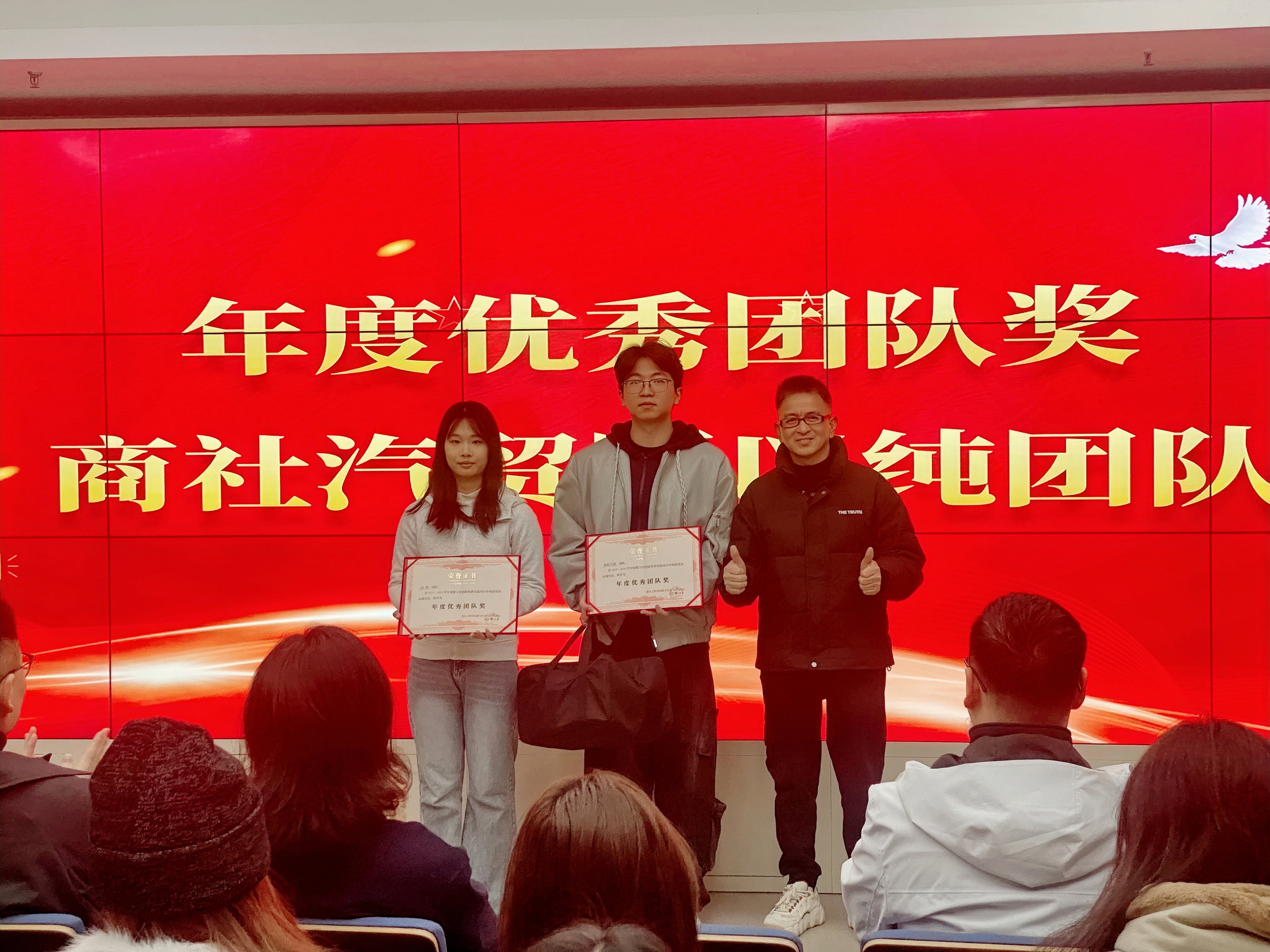 随后表彰环节成为大会核心亮点,多项荣誉逐一揭晓,获奖学员依次登台领奖。冉杰、梁若果等13人获项目实训优秀奖。王宇婷、彭宇等4人摘得最佳内容创作奖,余芳园、李佳鸿等5人获评最佳潜力主播奖;邓占银、杨思源等5人拿下最佳人气主播奖,祝顺艺,李秋媛等5人获最佳新人主播奖,陈美玉,卢梦莹等5人获最佳运营奖;李文静、胡焱等5人获评年度进步达人奖,黄明臻、杨莹等3人当选数字营销之星,吴美凤,周静宜等3人荣获年度最佳主播奖;商社汽贸与以纯团队凭借突出表现,斩获年度优秀团队奖。企业代表与院系领导分别为获奖个人及团队颁奖,见证学子们的荣耀时刻。