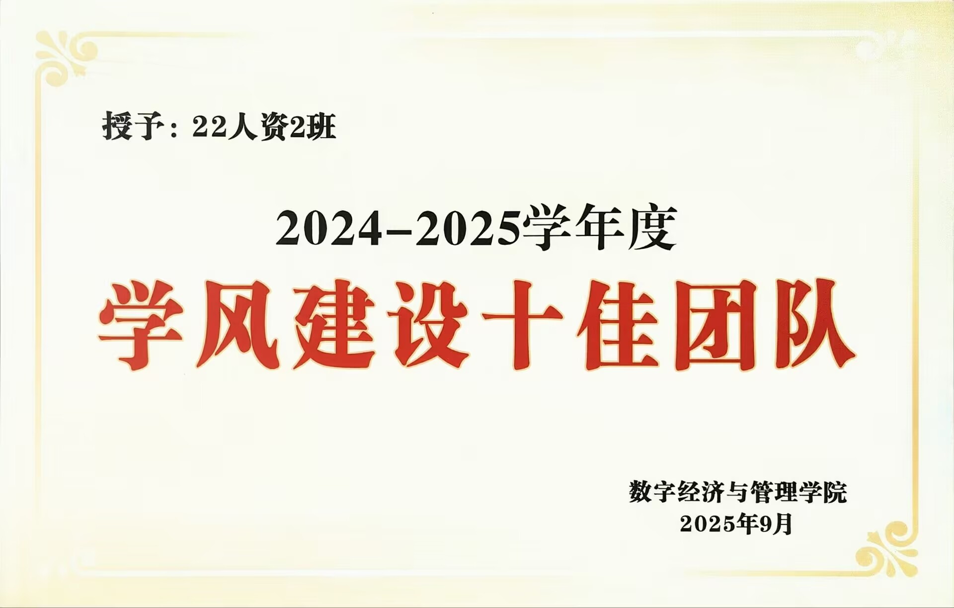22人资2班始终以蓝色文化主导学风建设,通过建立学习小组、整理核心课程复习重点,实现专业课通过率接近100%。2023-2024学年,班级17人获校级奖学金,4人获国家励志奖学金,获奖人数位居专业前列;15人通过英语四级、1人通过六级,26人获普通话等级证书,4人获导游资格证,1人同时取得初级经济师与会计资格证书,3人获专业技能证书,职业竞争力显著提升。