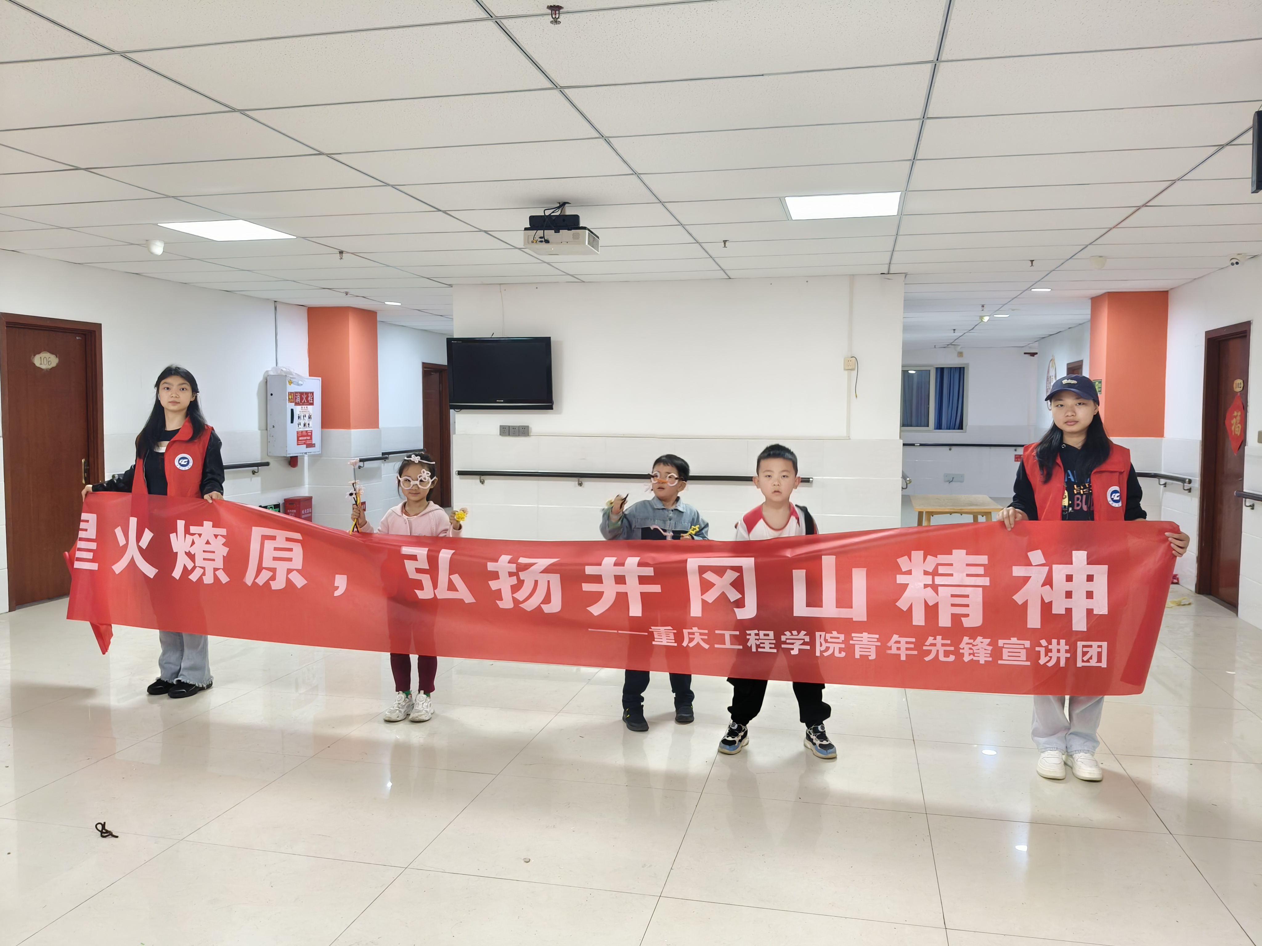 活动尾声,宣讲团成员与孩子们亲切合影留念,记录下了红色基因传承的美好时刻。此次活动不仅推动了红色基因传承走深走实,也让同学们在志愿服务中践行初心使命,实现自我成长。