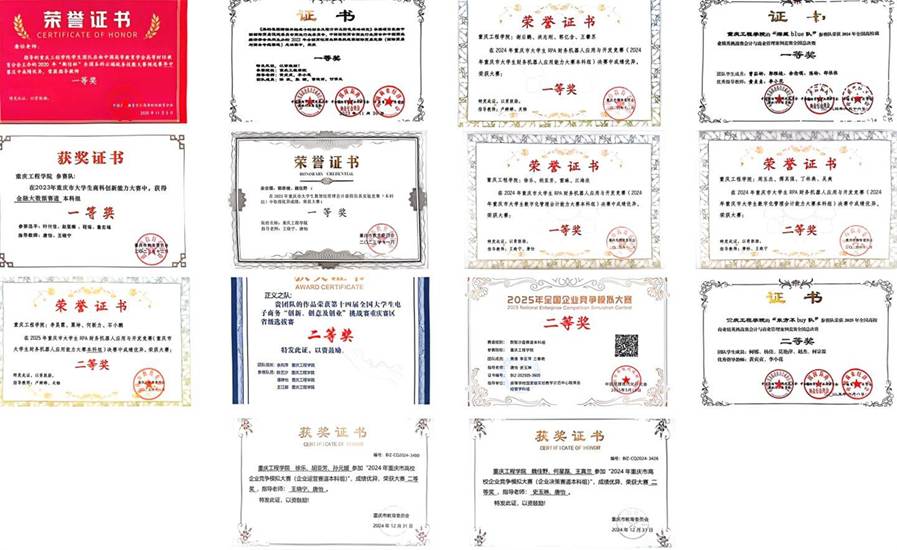 财管专业教师团队高度重视以赛促学、以赛促练,积极发挥引导与指导作用,精心组织学生参与各类学科竞赛,聚焦财务会计、税务筹划、金融创新、大数据财务等核心领域,常态化开展竞赛培训、模拟演练与作品打磨,助力学生将专业理论知识转化为实践应用能力,实现多项学科竞赛奖项突破。近年来,财务管理专业学生在教师的悉心指导下,奋勇争先、屡创佳绩,累计获得国家级奖项30余项、市级奖项100余项、校级奖项10余项,竞赛成果丰硕,不仅彰显了专业人才培养质量与学生的专业素养,也进一步提升了专业的行业影响力与社会认可度。