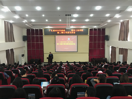 本网讯(管理学院/杨睿) 为进一步深化校企合作,促进应用型本科人才培养,4月20日下午,我校管理学院在行政楼阶梯报告厅举行第二期广汇重庆中汽西南订单培养班宣讲会。