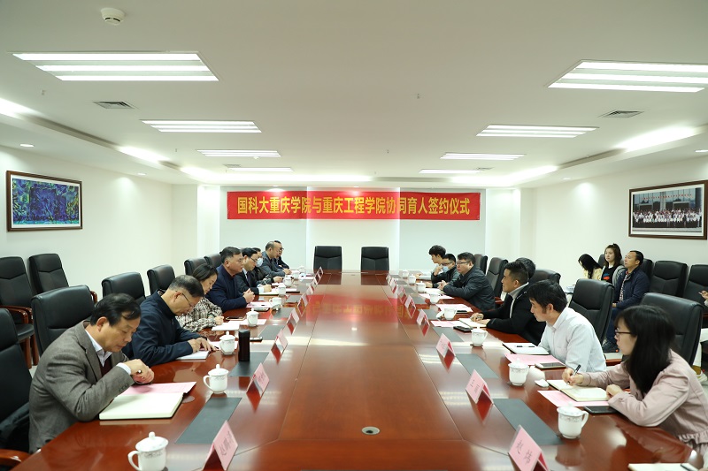 11月3日,校与中国科学院大学重庆学院签订合作框架协议,签订仪式在国科大重庆学院举行。中科院重庆研究所、国科大重庆学院党委书记韦方强,重庆工程学院校长桂国庆,党委副书记兼常务副校长张业平,校长助理杨桂、简玉刚,双方二级单位相关负责人出席了签约仪式。首先,国科大重庆学院学生处处长、继续教育学院院长李向东介绍了项目的合作背景。桂国庆讲话认为,双方合作协议的签订是探索人才培养的新路径,为学生提供了更优质的学习平台,将为学生的进一步成长打下坚实的基础。重庆工程学院依托国科大重庆学院优势办学资源,有益于推动学校特色学科建设、专业建设和课程建设,有益于深化学校教学改革,有益于提高教学和学生培养质量。他要求学校相关部门进一步加强互动,及时沟通,把项目实施工作做实做细。双方共同协作,牢记“为党育人,为国育才”光荣使命,落实立德树人根本任务,为共同目标相向而行,助力学生成长成才。他预祝合作达到预期目标,并取得圆满成功。韦方强介绍了国科大重庆学院在渝与相关高校合作情况,他认为国科大重庆学院与重庆优秀特色高校合作,推动“卓越工程师班”项目建设培养卓越工程师,是国科大重庆学院落实重庆市委市政府相关要求的重要体现,将与重庆工程学院携手联动共同培养“大国工匠”。他强调合作项目要建立长效管理机制,不断改进教学体系,保证教学质量,为国家、地区培养更多合格的应用型高级人才。随后,桂国庆和韦方强分别代表重庆工程学院和国科大重庆学院签订了合作框架协议。据悉,两校将围绕重庆市以大数据智能化为引领的创新驱动发展、科教兴市和人才强市等重大战略需求,发挥双方在大数据、人工智能、软件工程、电子信息、智能制造等学科专业的资源优势,共同促进和带动相关前沿学科专业发展,科学研究、人才培养、服务社会“三位一体”齐头并进,更好服务区域经济社会发展。通过双方校校紧密合作、联合协同育人,共同达成建成“一流的学科专业”、打造“一流的教师团队”、建立“一流的教学体系”、培养“一流的技术人才”、产出“一流的科技创新成果”的合作目标。