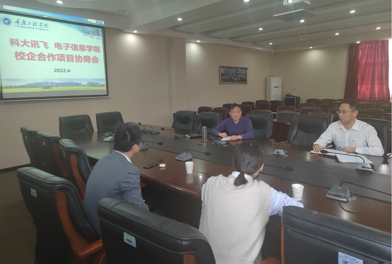 4月8日下午,科大讯飞股份有限公司杨洋一行到电子信息学院就校企合作事宜开展洽谈交流,电子信息学院院长何世彪、副院长陈成瑞参加交流。何院长介绍了学院基本情况,希望双方能充分发挥校企双方优势资源,开展良好的合作杨总表示科大讯飞在语音智能处理、人工作智能领域有着领先的技术优势,与高校有着紧密的合作关系,并取得了丰富成果,期待与重庆工程学院开展富有成效的合作。双方围绕共建产业学院应用型人才培养、实践教学基地建设等事宜进行了深入的交流和研讨,在合作内容、路径等具体问题上达成了良好共识。