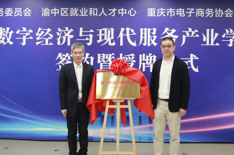 为有效对接重庆“数字经济”战略、服务渝中区“4311”现代产业体系,深化人才培养供给侧改革,在市商务委、渝中区政府的指导与支持下,重庆工程学院、渝中区商务委、渝中区就业和人才中心、重庆市电子商务协会及相关企业,共建成立数字经济与现代服务产业学院。12月12日,签约暨授牌仪式在渝中区重庆数字商务产业园路演大厅举办。重庆市商务委员会党组成员、副主任李巡府,渝中区委常委、区政府常务副区长邓光怀,重庆市商务委员会电子商务和信息化处处长唐遥,渝中区商务委员会党委副书记、副主任陈浩,重庆市商务委员会电子商务和信息化处副处长马璨,渝中区人力与社会保障局就业和人才中心主任秦伦,重庆市电子商务协会会长王涵冰,重庆工程学院校长孙芳城,以及产业学院共建单位代表出席仪式。