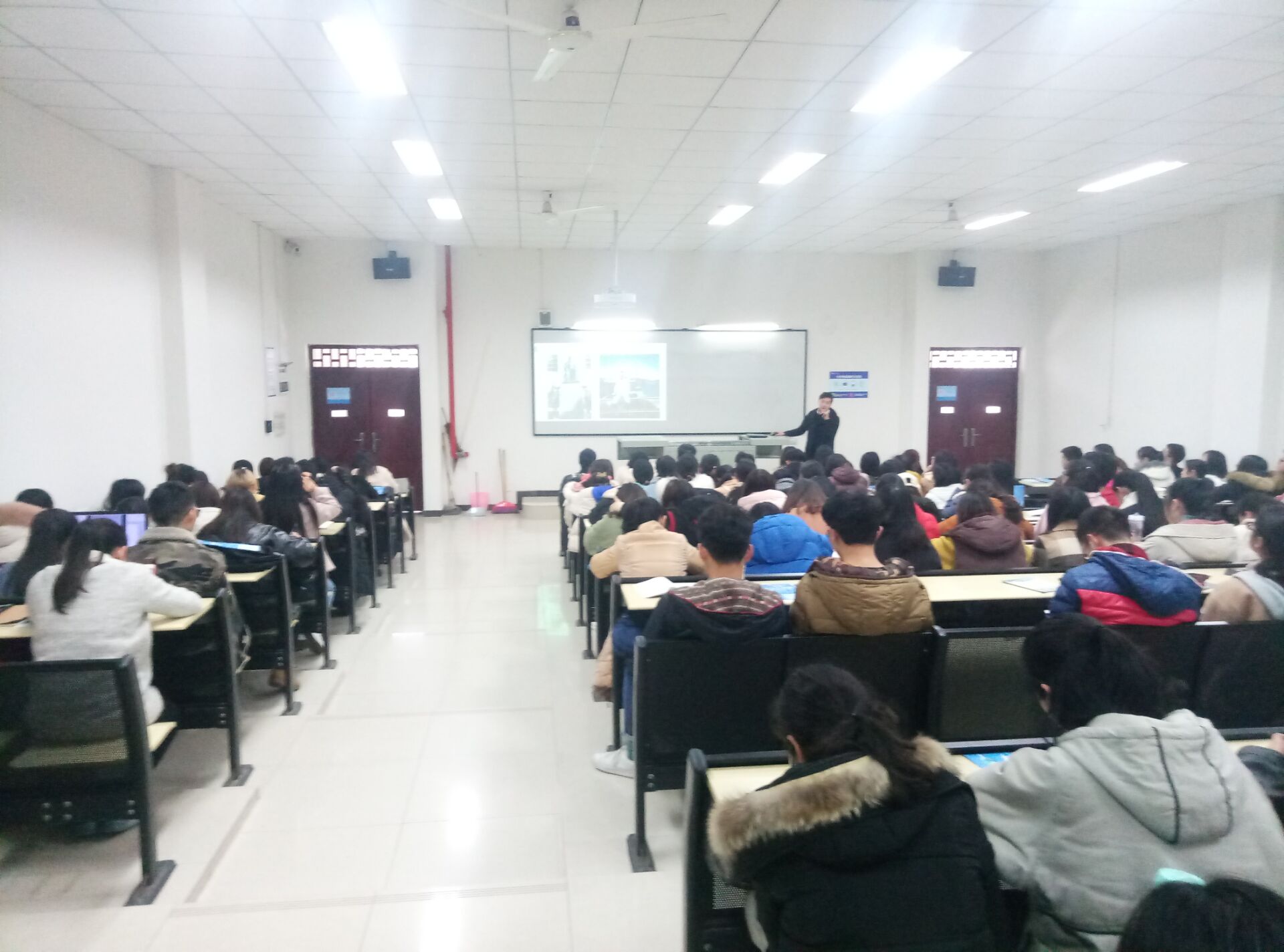 本网讯(文雷洋/ 图/韩玉鹏)2019年3月7日下午14:00整,重庆工程学院科技国际处举行了2019年暑假赴美带薪实习项目宣讲大会,大会在第六教学楼203教室举行。此次宣讲大会邀请了John作为会议的主讲人,在主持人简短的讲话后宣讲会正式开始。
