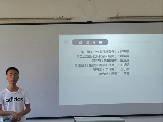 在培训过程中,赵婉莹同学首先给大家介绍了部门的老师以及老助理们;其次是助理需要做的一些日常事务、注意事项、以及近期的工作安排;最后就是介绍了一下部门里的三个版块6个小组的主要工作内容,每个组都有一个负责人进行带领,新助理根据需要选择进入版块。