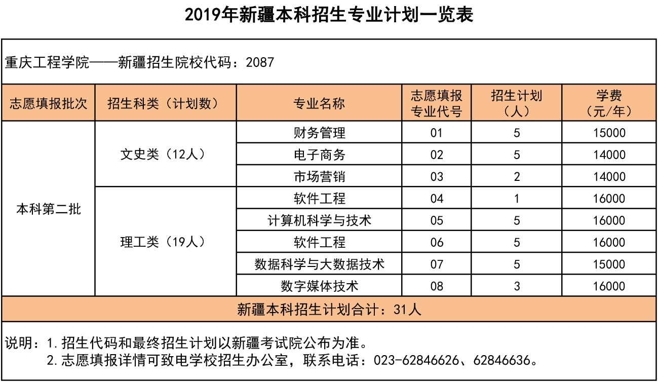 2019年新疆本科招生专业计划