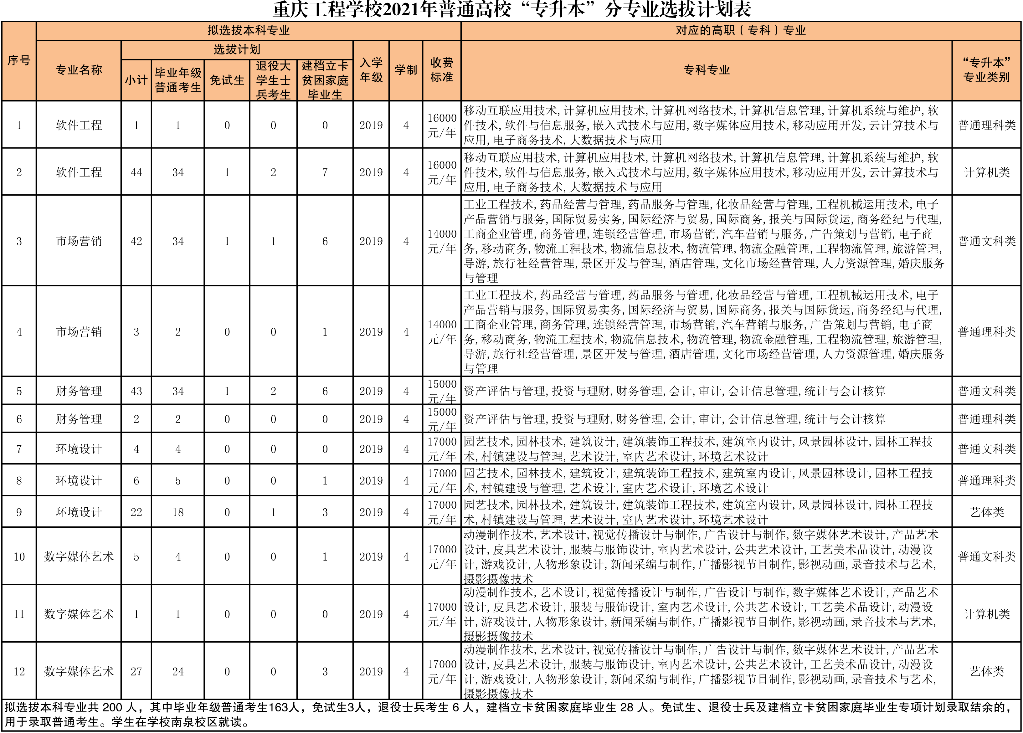 重庆工程学院2021年普通高校“专升本”分专业选拔计划表.xls