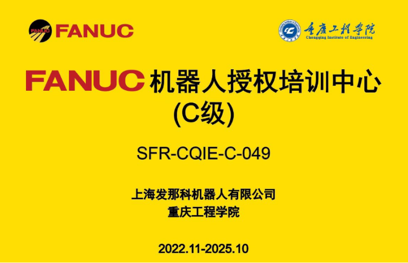 工业机器人系统集成与应用实验室为学生开展工程实践能力训练提供了坚实基础,经过不断完善,通过了FANUC上海技术学院的官方审查,成为C级机器人授权培训中心,具备了独立开展社会培训和资格认证的资质,并被重庆华数机器人有限公司认定为校企合作人才培养基地。