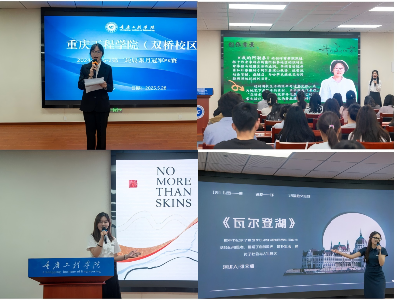 数字艺术学院学生张艾瑞通过推荐梭罗的《瓦尔登湖》,诠释了焦虑的源头与减压的方式,激励大家学会珍惜当下的美好和温暖,学会与自然和谐共处,学会在忙碌的生活中寻找片刻的宁静。参赛选手们从多个维度解析好书推荐的价值点,将阅读转化为富有感染力的语言表达。