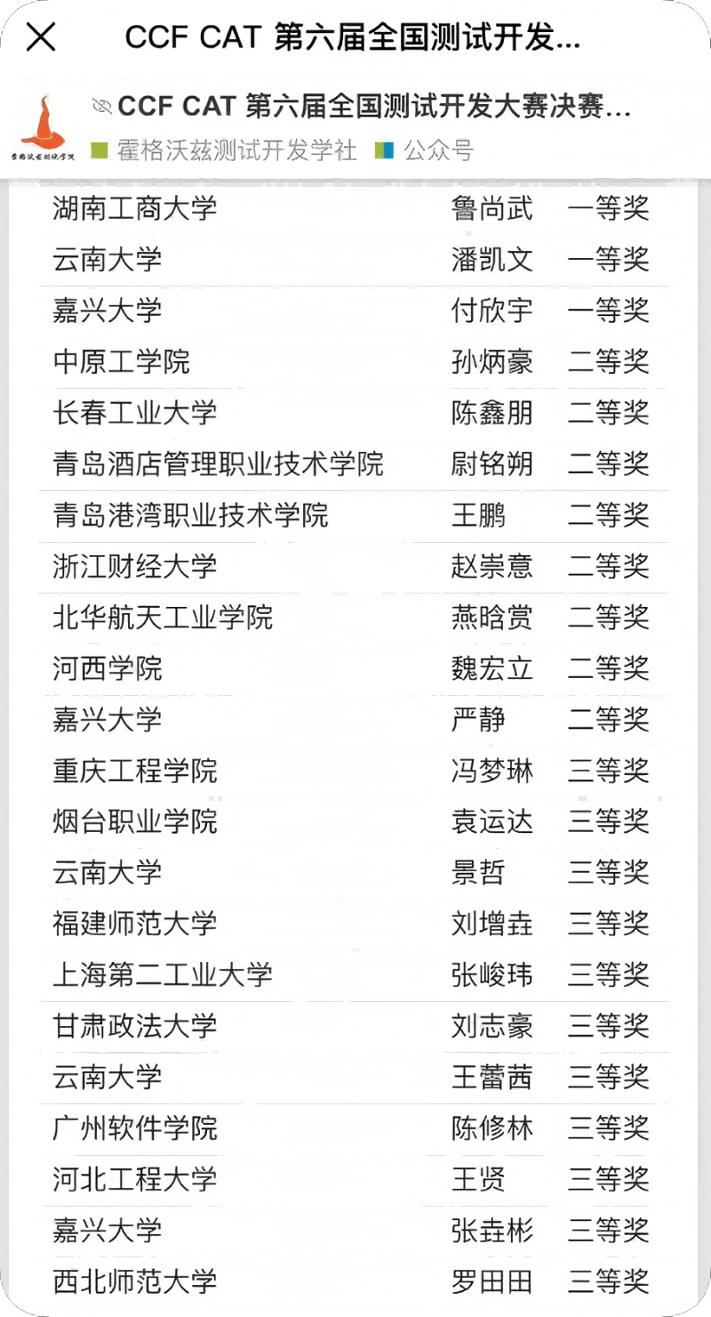 软件学院学子在“第六届全国测试开发大赛”中斩获佳绩