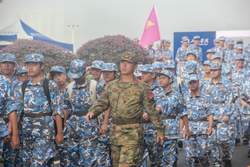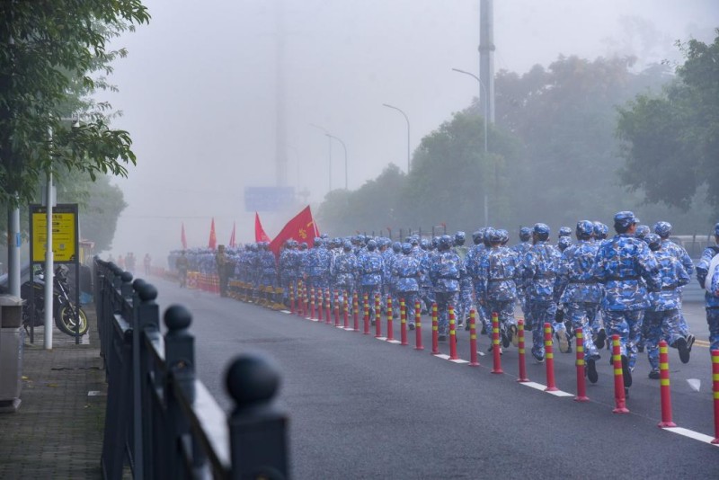 “出发”令下,各连队高举旗帜,踏上本次拉练的征程。此次拉练路线经过精心规划,涵盖了多种地形,全程约10公里,是对新生体能和毅力的综合考验。