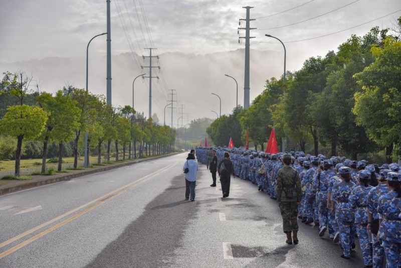 一路上,同学们步伐整齐,昂首挺胸,展现出了昂扬的斗志和饱满的精神风貌。教官与辅导员全程陪同,时刻关注学生状态,确保安全。尽管汗水浸湿了衣衫,但没有人轻言放弃,彼此间的鼓励与帮扶成为途中最动人的风景。“团结就是力量”的歌声此起彼伏,充分体现了2025级新生强大的凝聚力。