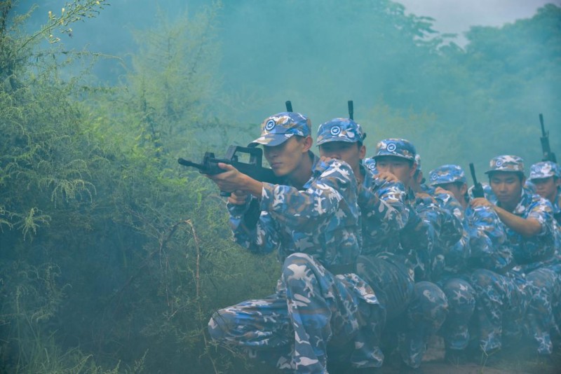 途经模拟“染毒地带”时,战术连班长举起拳头示意,全体同学立刻低姿半蹲前进,迷彩鞋踩过晨露浸润的地面,发出细碎的“沙沙”声。