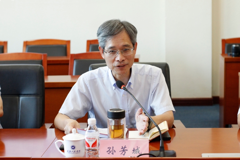 座谈会上,孙芳城代表学校对韩小雨一行的到来表示诚挚欢迎,他介绍了学校基本建设情况和办学特色,希望两校加强沟通交流,共谱校际合作的新篇章。随后,学校相关职能部门负责人从专业建设、校企合作、科研创新及AI赋能教育等维度展开详细介绍。