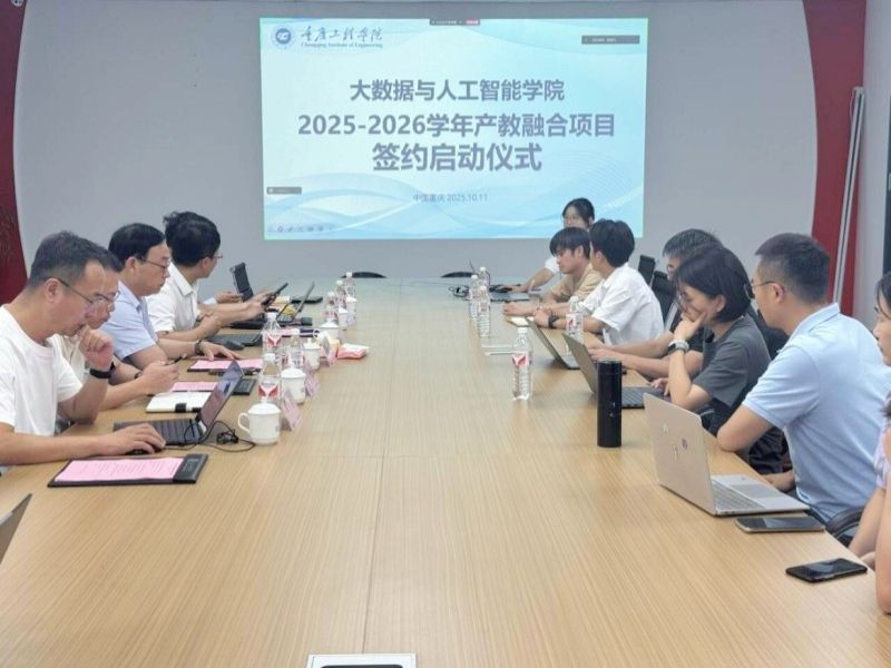 本网讯(文/图 大数据与人工智能学院 杨孟凡)10月11日下午,大数据与人工智能学院2025—2026学年产教融合项目签约及启动仪式在第七教学楼7205会议室举行。学校党委副书记、常务副校长张业平出席并讲话,学院院长李钦,党总支副书记宁俊龙,副院长廖宁、吴平、周勇及学院全体专任教师参加仪式并见证签约。