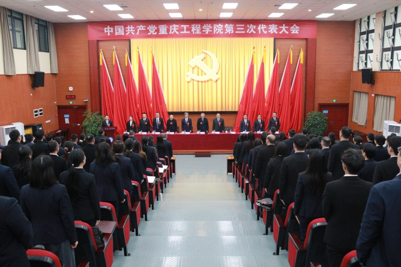 本网讯(文/党委宣传部 图/大学生记者团 宋衍琪)11月22日,中国共产党重庆工程学院第三次代表大会在南泉校区七教学楼报告厅隆重召开。本次大会是在以中国式现代化全面推进强国建设、教育强国建设开启新征程的关键时期,学校系统总结“十四五”成效、科学谋划“十五五”蓝图的重要会议。大会的主题是,高举习近平新时代中国特色社会主义思想伟大旗帜,深入贯彻党的教育方针,以政治建设为统领,以质量提升为核心,以内涵建设为重点,以服务发展为导向,凝心铸魂抓党建,砥砺奋进促发展,为建成特色鲜明的高水平应用型大学筑牢党建根基,汇聚磅礴力量。
