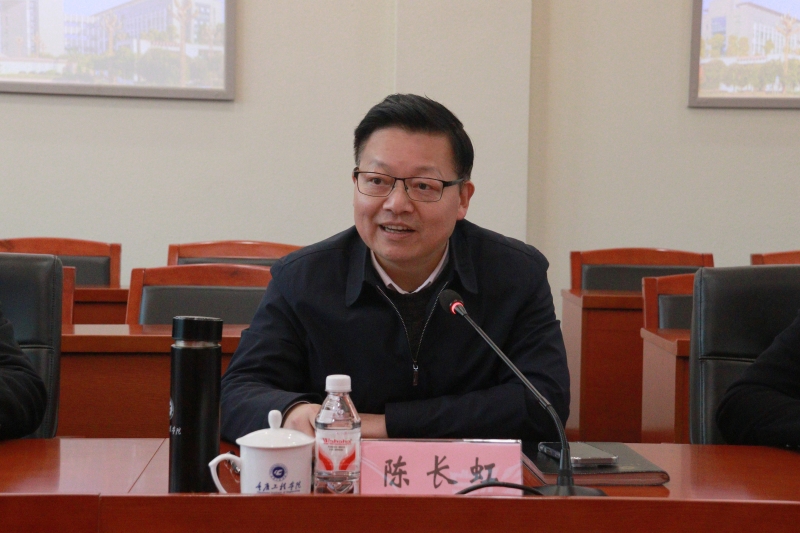 座谈会上,陈长虹代表学校对黄晏一行的到访表示热烈欢迎。他深情回溯了两校由来已久的深厚情谊,对重庆第二师范学院长期以来给予的关心与支持表达诚挚谢意。随后,陈长虹详细介绍了学校的发展概况,学校已形成以“信息技术 +”为核心的特色专业集群,毕业生留渝就业占比高、深度服务地方重点产业领域,连续7年获评重庆市就业工作突出集体;同时分享了学校党建工作特色成果,包括构建 “12345”大党建工作格局、“335”大思政工作体系,以及深化党建“双创”建设的实践成效,并介绍了学校第三次党代会确定的未来发展目标与规划。