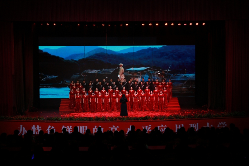 本网讯(文/校工会 周黎 图/大学生记者团)为全面落实立德树人根本任务,弘扬伟大建党精神与爱国主义主旋律,展现我校教职工团结奋进、昂扬向上的精神风貌, 12月12日晚,由校工会、校团委主办的“铸魂育人守初心·踔厉奋发建新功”2025年教职工合唱比赛在南泉校区学术报告厅隆重举行。全体在家校领导,全校教职工与学生代表共同观看了本次比赛。