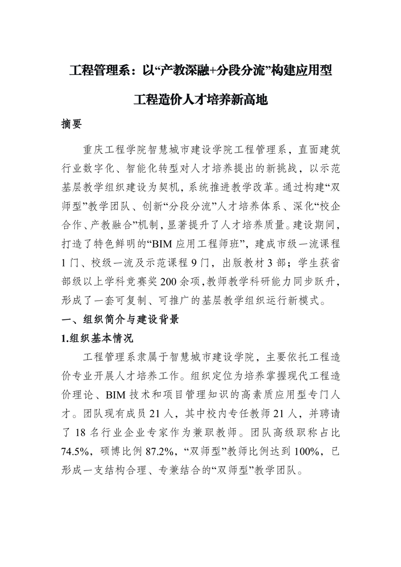 示范基层教学组织建设案例-工程管理系