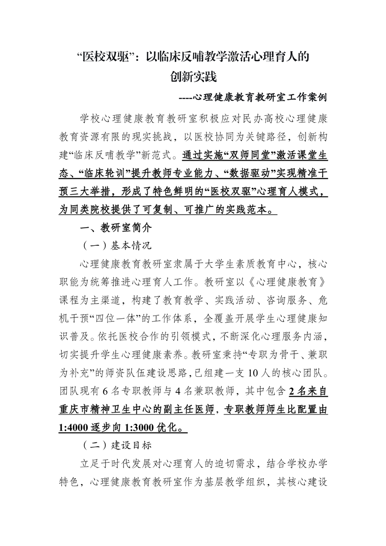 示范基层教学组织建设案例-心理健康教育教研室
