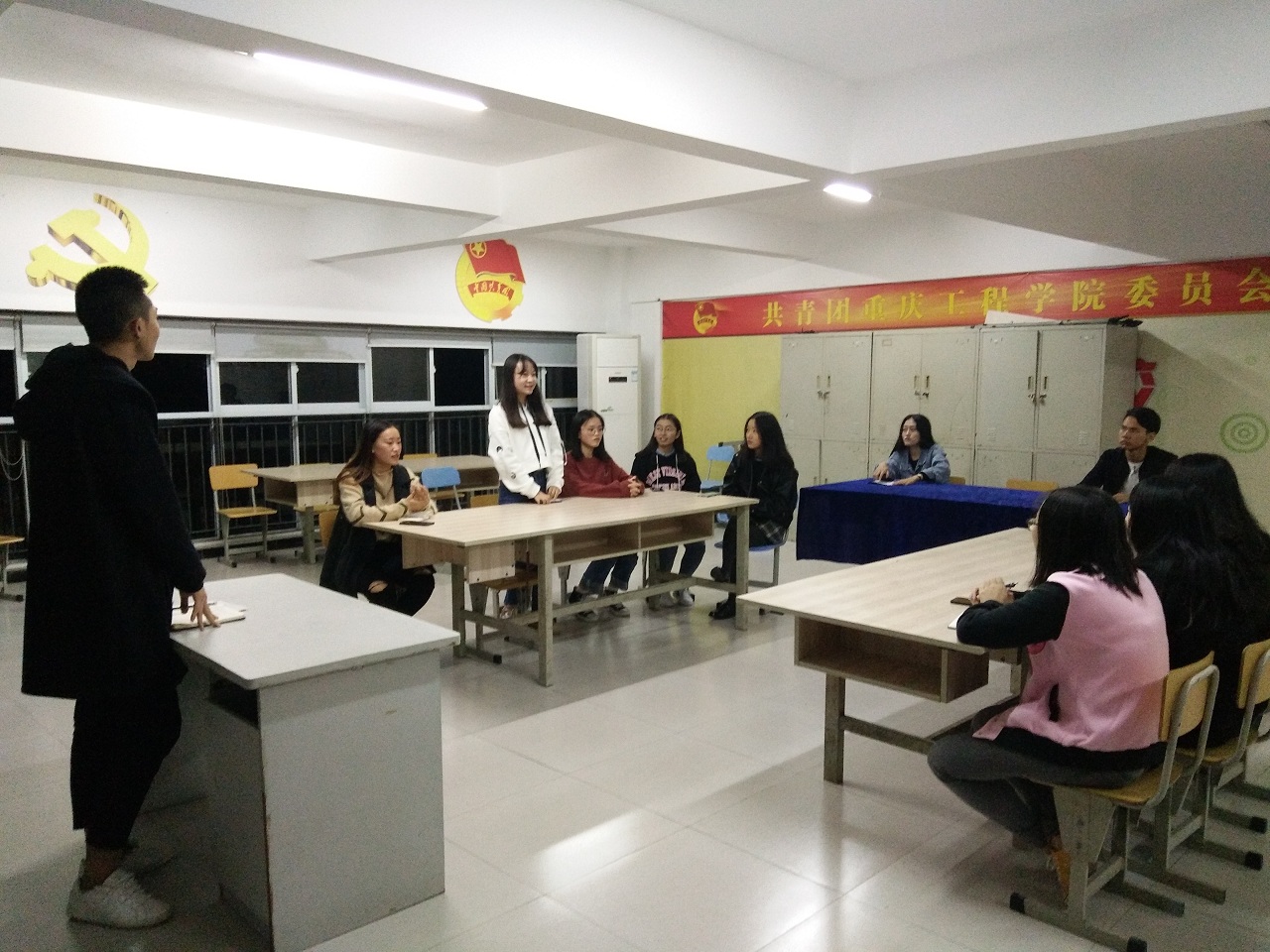 本网讯(文/傅相美 图/周广) 为提高学生会宣传部新闻采写能力和新媒体运营水平,促进校院两级工作的沟通与交流。校学生会宣传部于2018年10月14日晚20:30在大学生服务中心二楼学生会办公室牵头组织了交流研讨会,各二级学院学生会宣传部参与本次议会。
