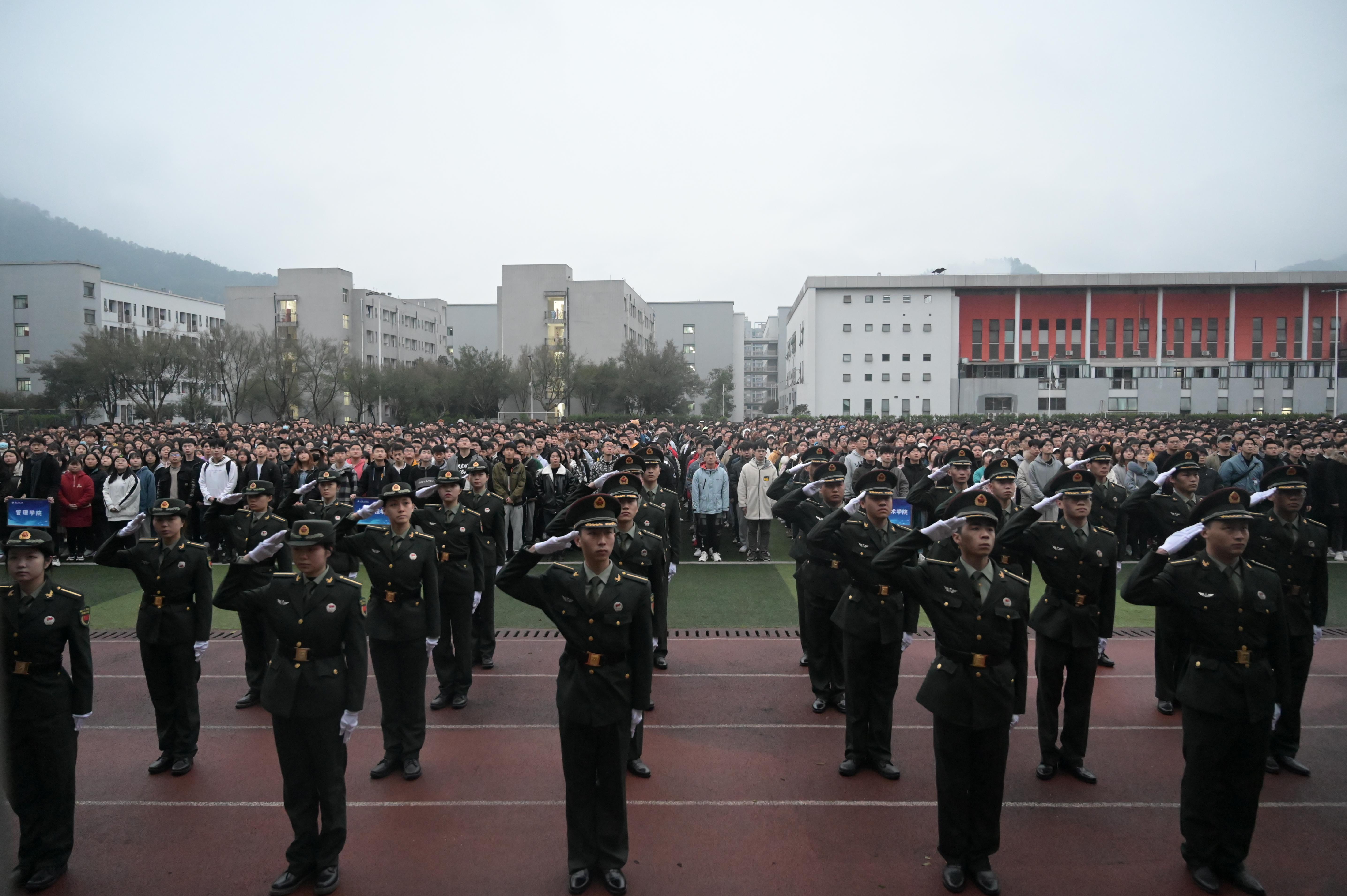 本网讯(校团委 黄涛)我校2020~2021学年第二学期第一次“升旗仪式”于3月8日在南泉和双桥两个校区足球场同时举行,校长助理王建东,相关职能部门负责人,各二级学院党政领导、分团委书记、辅导员代表,2019级、2020级全体学生共8200余人参加。