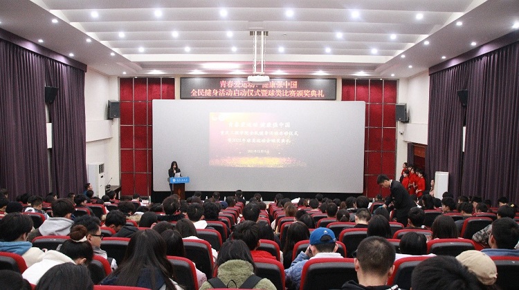 本网讯(校团委 金质纯)为深入学习贯彻习近平总书记“七一”重要讲话精神和关于加强青少年体育教育的一系列重要论述,积极响应共青团中央、国家体育总局和全国学联“青春爱运动 健康强中国”全民健身活动的号召,落实全民健身和健康中国国家战略,同时总结表彰2021年秋季球类运动会获奖团体及个人,弘扬我校学生良好的精神风貌,培养学生的自信心以及加强体育锻炼的决心。我校“青春爱运动 健康强中国”健身活动启动仪式暨2021年秋季球类运动会颁奖典礼于2021年12月16日在行政报告厅圆满举行。