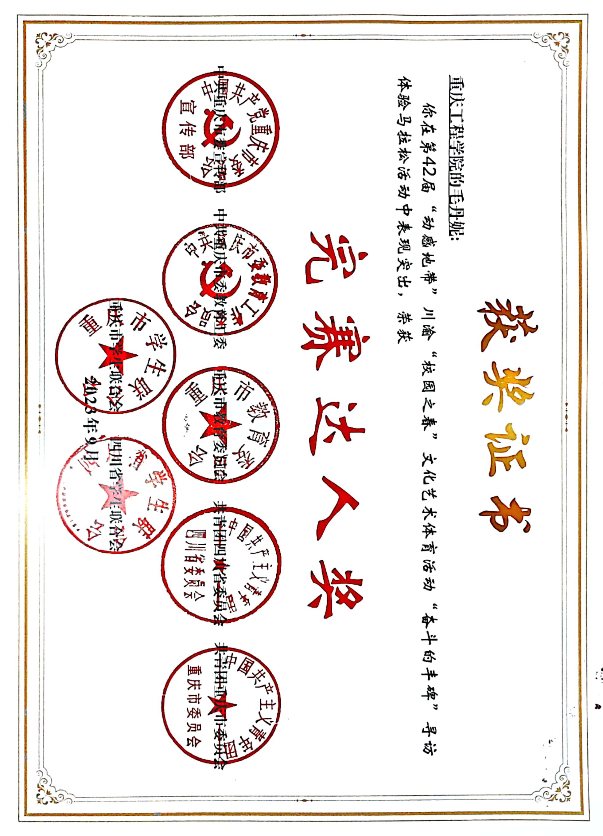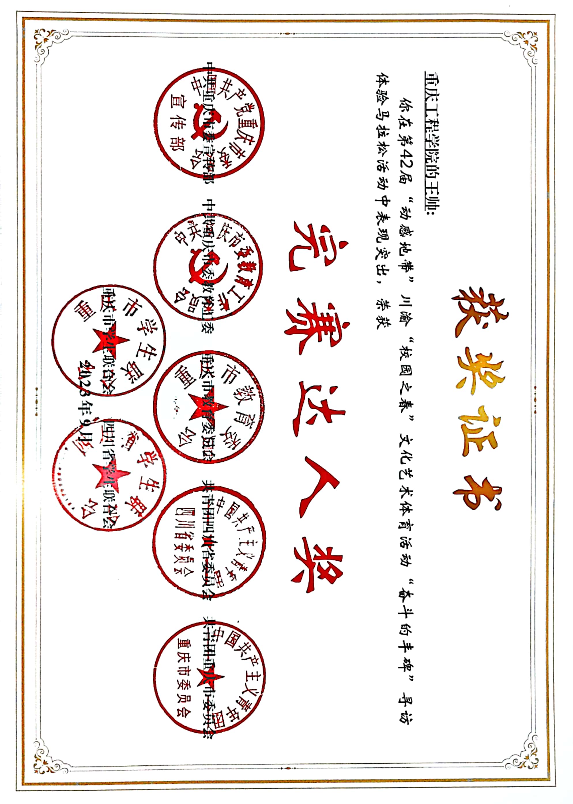 【喜报】我校在第42届“动感地带”川渝“校园之春”文化艺术体育活动中斩获佳绩8项!