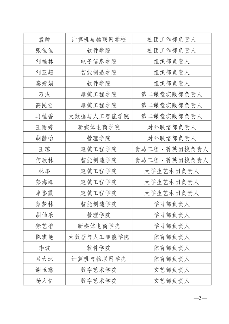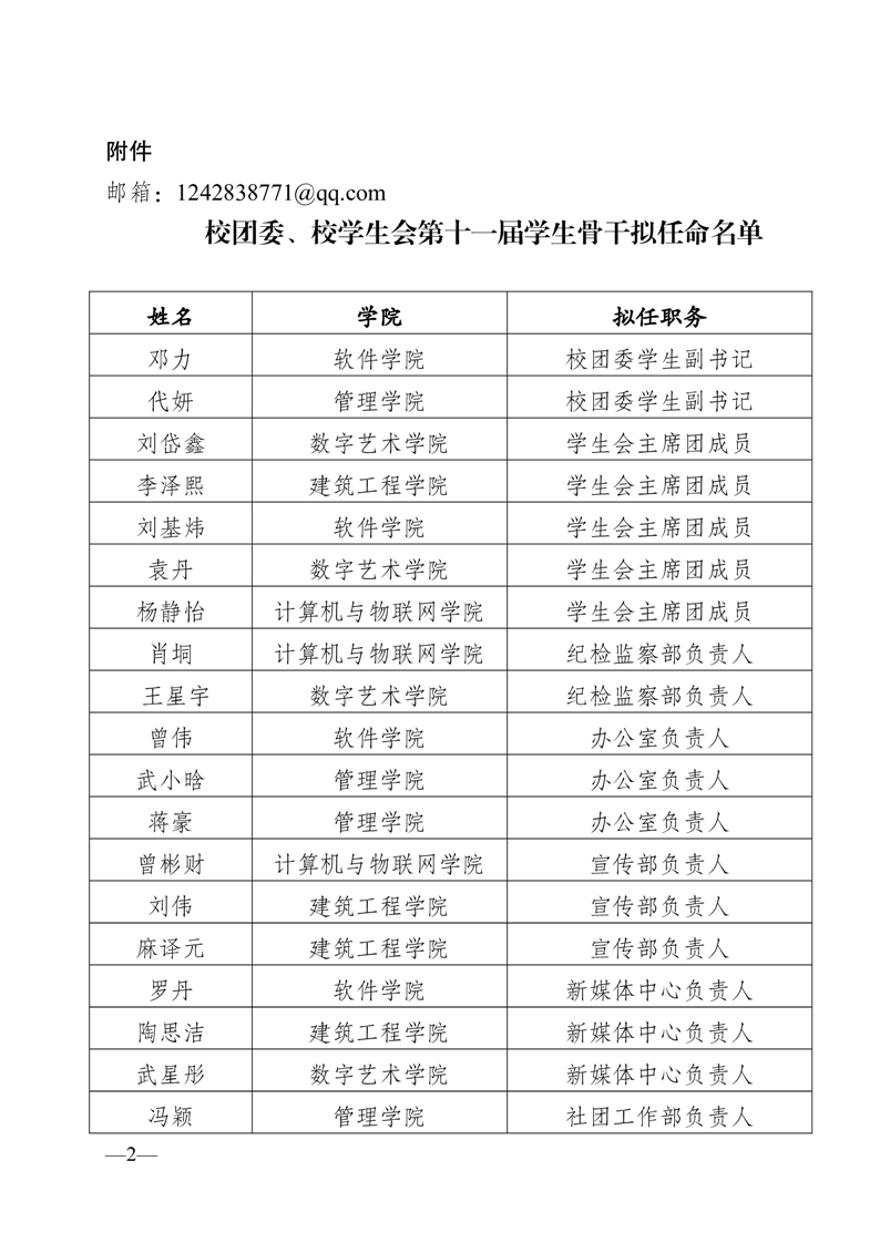 共青团重庆工程学院委员会关于第十一届学生骨干拟任命名单公示