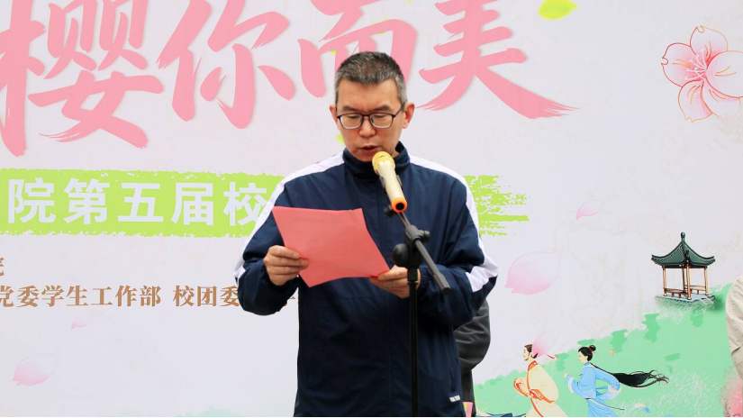不赏樱满枝,怎知春浓意?为深化和谐校园建设,践行以美育人、以体育人理念,丰富校园文化生活,4月1日下午,我校第十届身心健康节之2026年“智慧重工 樱你而美”漫步活动在南泉校区浪漫启幕,吸引师生1000余名参与。开幕式由校团委专职团干杨晨主持,学校党委委员、宣传部部长赵鹏涛,学校纪委委员、党委学生工作部部长黄燕,学校基建后勤处处长程国园,学校数字经济与管理学院党总支书记尚伟出席活动,程处长在开幕式上解读活动方案,赵部长致辞并宣布活动开幕,现场氛围热烈,师生共赴这场春日樱花之约。