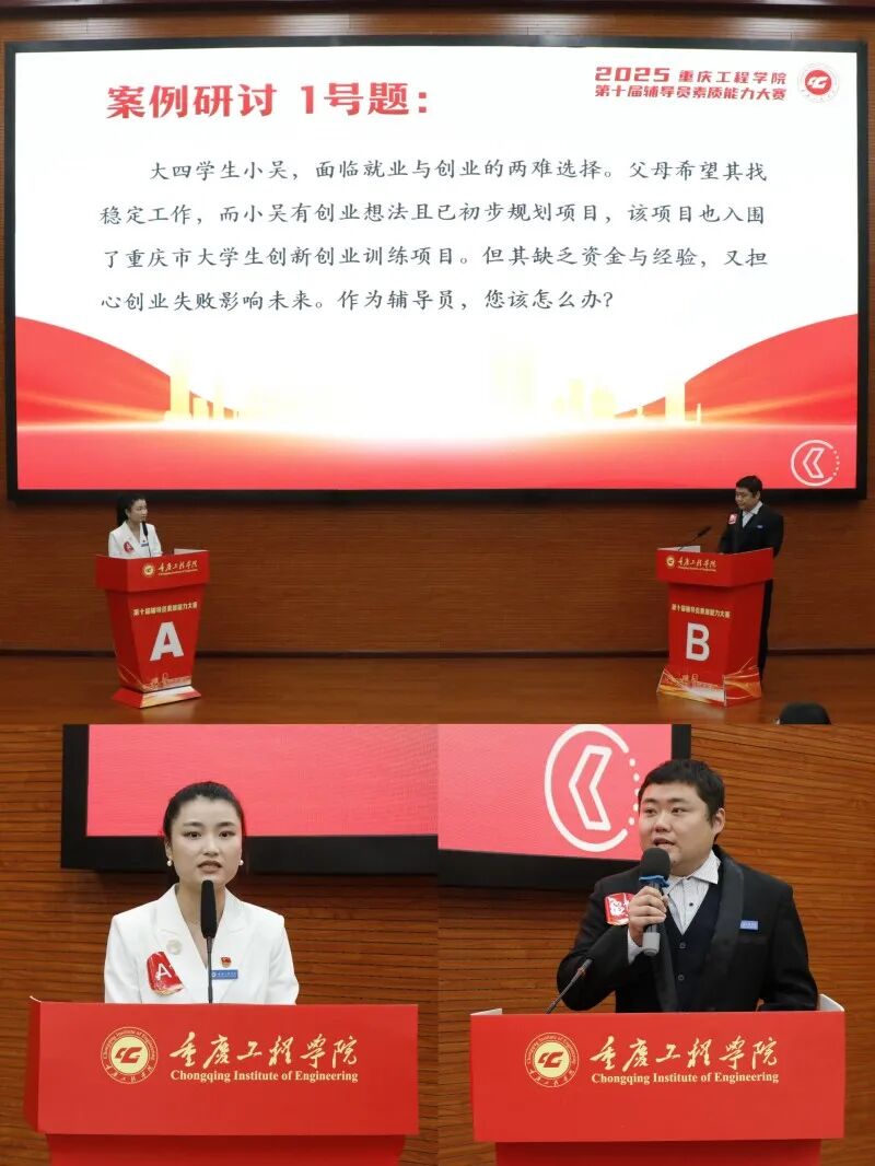 为进一步提升辅导员队伍的专业素养和育人能力,10月29日,学校在7807报告厅举办了重庆工程学院第十届辅导员素质能力大赛决赛。学校特邀重庆建筑工程职业学院党委学工部部长卢嘉、重庆邮电大学网络空间安全与信息法学院党委副书记张丹担任本次大赛评委,学校副校长王建东出席,学生处等职能部门主要负责人、各二级学院党总支书记、学生科科长和全体辅导员应邀在场观摩。