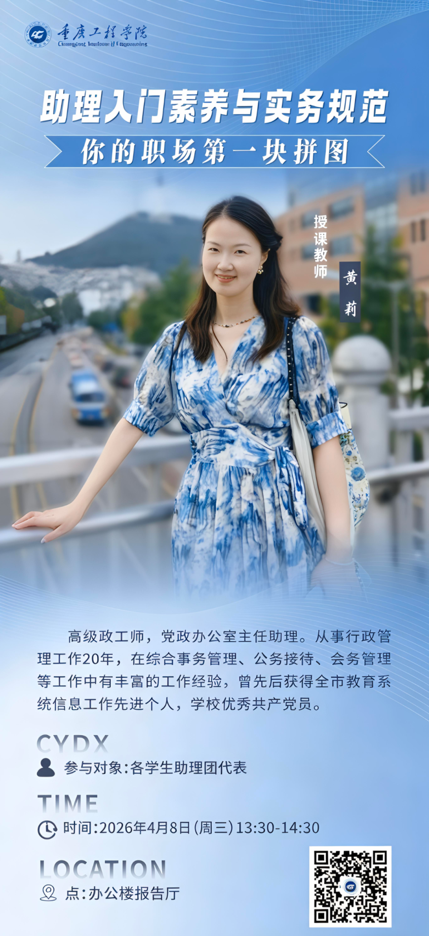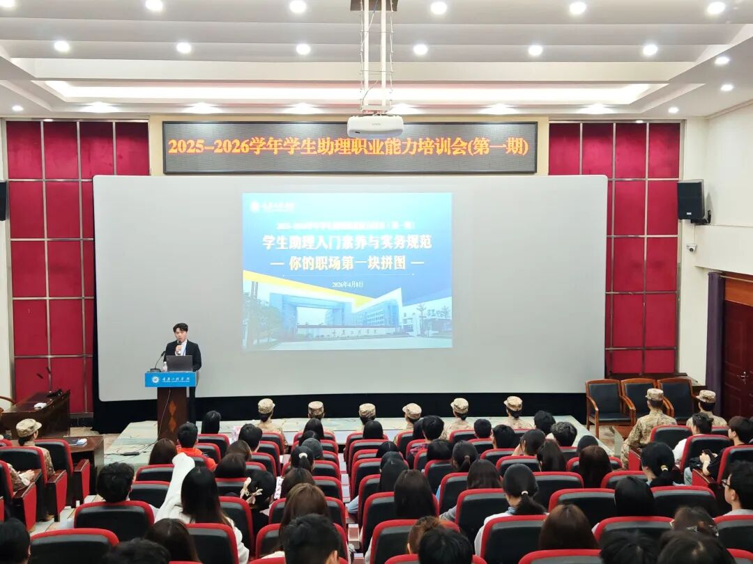 为进一步提升学生助理的综合职业素养,规范日常工作流程,4月8日,我校南泉校区2025-2026学年学生助理职业能力培训(第一期)顺利举行。本次培训由党政办主任助理黄莉老师主讲,全校180余名学生助理代表参训。